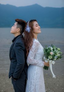 Ca sĩ Tú Tri và đạo diễn Yun Bin chụp ảnh cưới ở biển Đà