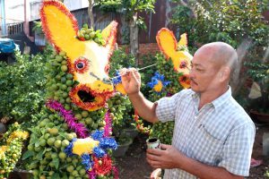 Ông Nguyễn Văn Dị, 52 tuổi, ở làng hoa Chợ Lách, kết từng bụi tắc