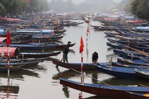 Lượng du khách đổ về chùa Hương (Hà Nội) và chùa Tam Chúc (Hà Nam)