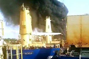 Hỏa hoạn xảy ra tại hầm tàu New Wind tải trọng hơn 9.000 tấn, đang