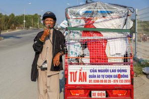 Xe quần áo giá 0 đồng của cụ ông Sài Gòn