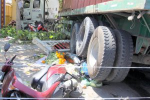 Chiếc container chạy trên đường 30/4, TP Vũng Tàu bất ngờ tông 5 xe máy