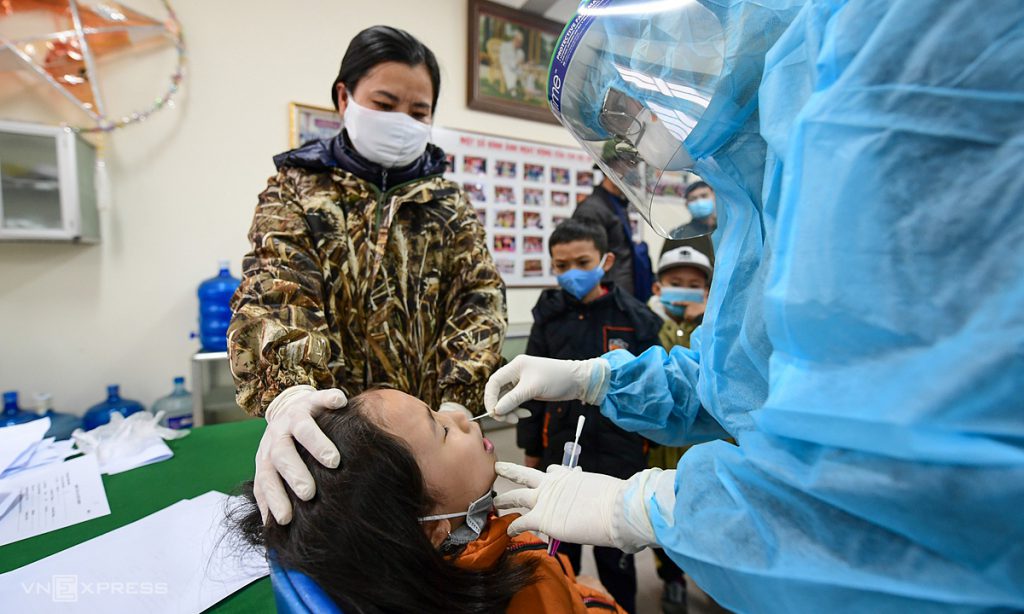 Chiều 31/1, khoảng 1.000 học sinh thuộc diện F3 của trường tiểu học Xuân Phương được lấy mẫu xét nghiệm. Mẫu được chuyển về CDC Hà Nội, khoảng hai ngày sau sẽ có kết quả.