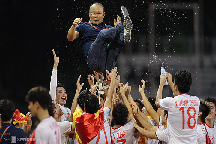 HLV Park Hang-seo lại tạo ra kỳ tích khi giúp đội Việt Nam đoạt HC vàng bóng đá nam SEA Games. Cú đúp của Văn Hậu và bàn thắng từ Đỗ Hùng Dũng giúp Việt Nam hạ Indonesia 3-0 ở trận chung kết trên sân Rizal Memorial, Philippines.