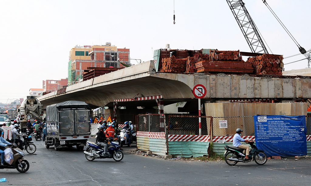 Ngoài các dự án nói trên, 3 cây cầu lớn đang xây dựng tại TP HCM cũng bị chậm tiến độ nhiều năm do mặt bằng chưa được bàn giao. Khởi công năm 2017, dự án xây cầu Bưng mới trên đường Lê Trọng Tấn (tiếp giáp giữa quận Tân Phú và Bình Tân), tổng mức đầu tư 514 tỷ đồng hiện ngưng trệ. Công trình dài 560 m, trong đó cầu dài 212 m, rộng 21-24 m. Kế hoạch ban đầu, cầu Bưng hoàn thành sau 20 tháng thi công, nhưng vướng mặt bằng liên quan hai doanh nghiệp bị ảnh hưởng khiến công trình trễ hẹn.