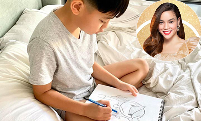 Ca sĩ Hồ Ngọc Hà hạnh phúc ngồi ngắm con trai vẽ tranh tặng mẹ dịp Noel và cho biết Subeo chính là động lực lớn giúp cô làm việc không mỏi mệt.