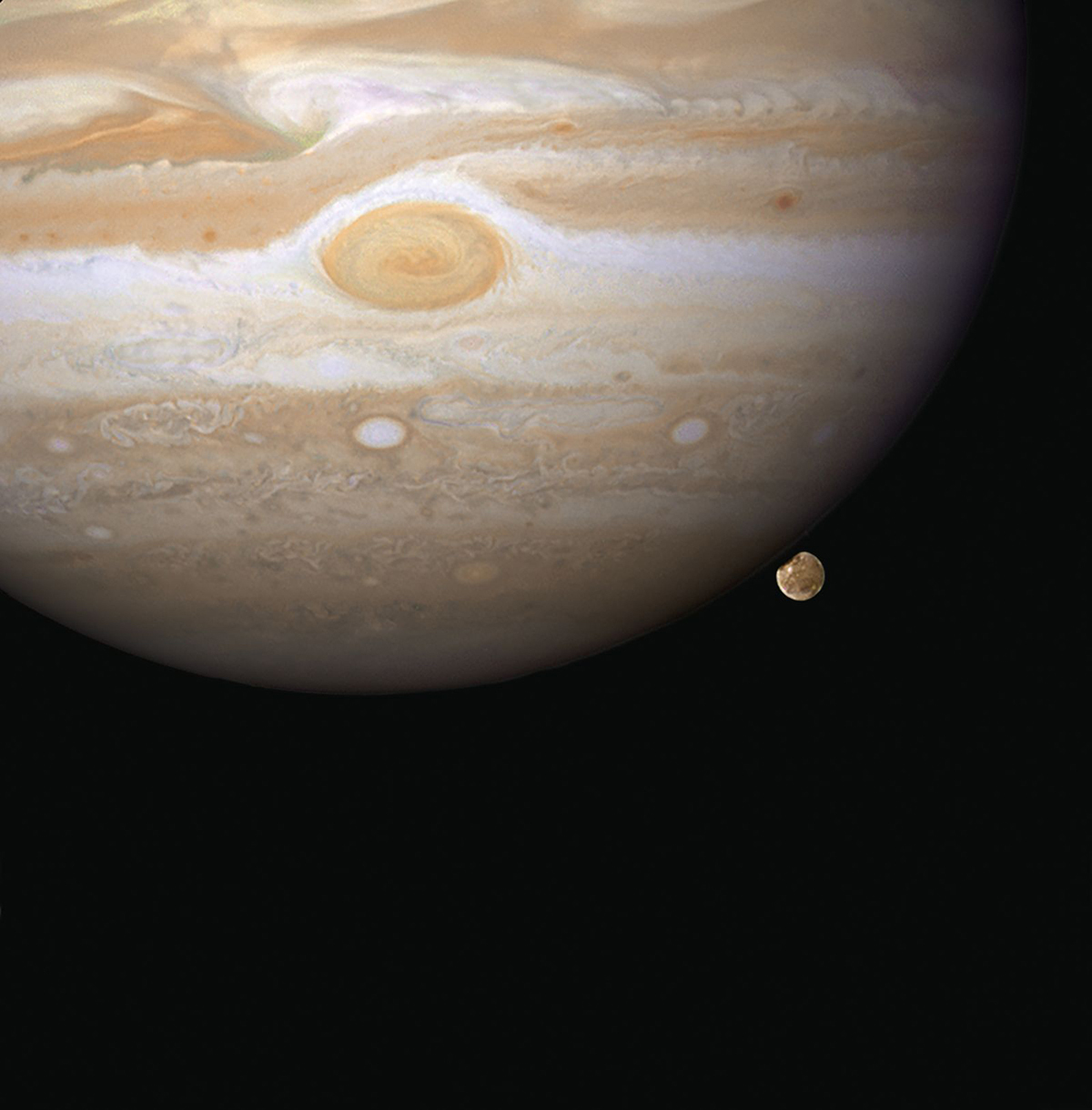 Sao Mộc và mặt trăng Ganymede trong cùng một khung hình được chụp vào năm 2007. Ganymede là vệ tinh tự nhiên lớn nhất trong hệ Mặt Trời của chúng ta với đường kính lớn hơn cả sao Thủy.