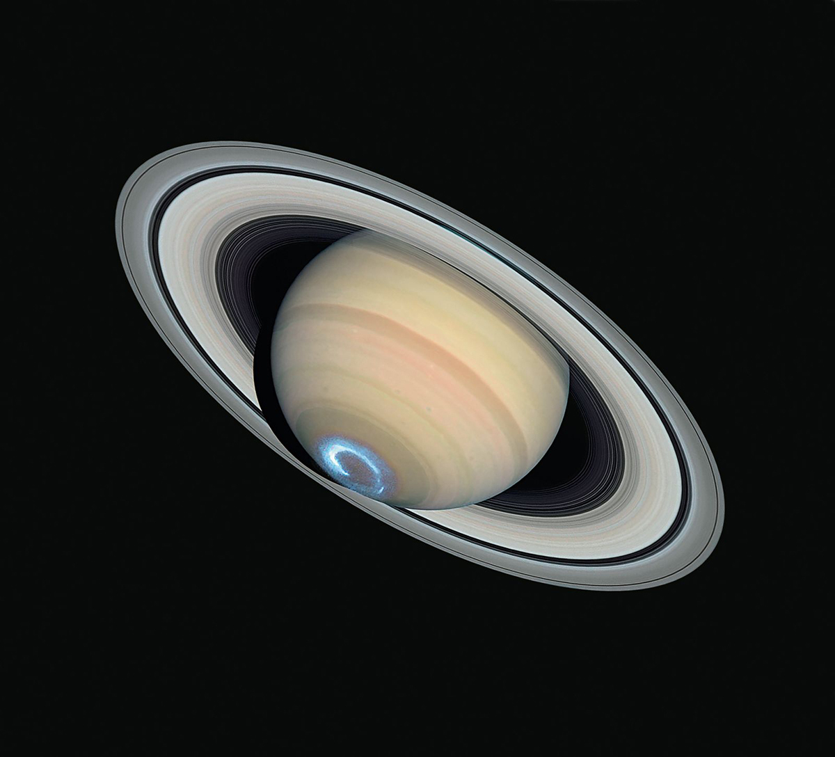 Hình ảnh sắc nét đến mức có thể nhìn rõ những vành đai hành tinh nhỏ của sao Thổ được Hubble chụp vào năm 2004.