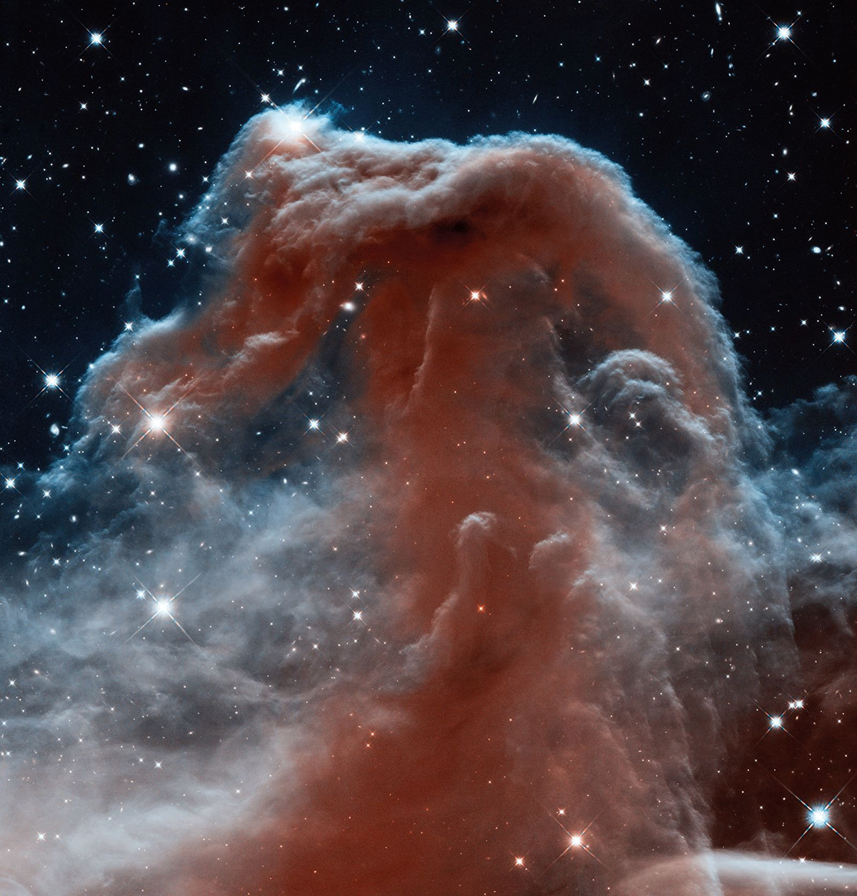 Vẻ đẹp mê hoặc của tinh vân Đầu ngựa cách Trái Đất 1.600 năm ánh sáng được Hubble chụp với bước sóng hồng ngoại vào năm 2012.