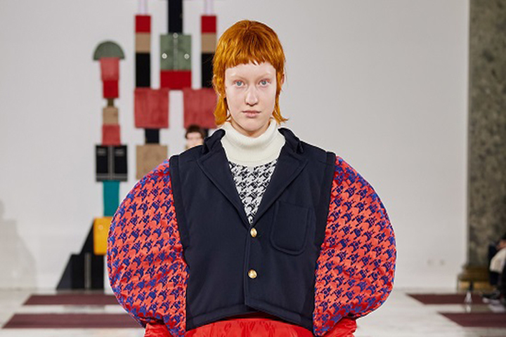 Nhà mốt sử dụng các khối hình học cơ bản: hình vuông, chữ nhật, tròn, tam giác, bán nguyệt, elip… ghép thành trang phục. Những khối hộp đồng thời làm tăng kích thước – biến thiết kế thành quần áo quá cỡ.
