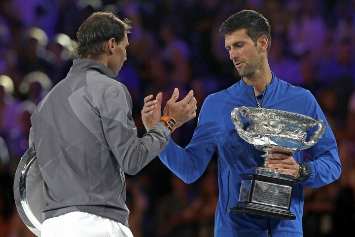 Djokovic hạ Nadal chỉ sau ba set tại Australia Mở rộng 2019. Ảnh: AP.