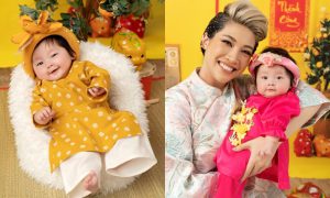 Trong bộ ảnh Tết đầu tiên cùng mẹ Pha Lê, bé Ốc được yêu mến