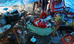 “Nhà mất rồi Chiếc lán tạm dựng bằng bạt màu xanh da trời của người