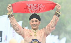 Đức Tuấn diện áo dài ngũ thân thi marathon, Nhan Phúc Vinh nỗ lực về