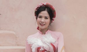 Diễn viên Thúy Hà thể hiện 10 bộ áo dài cách tân của Kenny Thái.