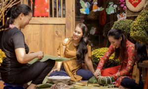 TP HCMSiêu mẫu Vương Thu Phương cùng mẹ và người thân gói bánh chưng chuẩn