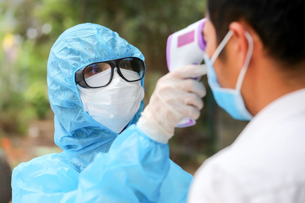 Nhân viên y tế tại Đà Nẵng kiểm tra thân nhiệt, phòng ngừa dịch bệnh. Ảnh: Nguyễn Đông
