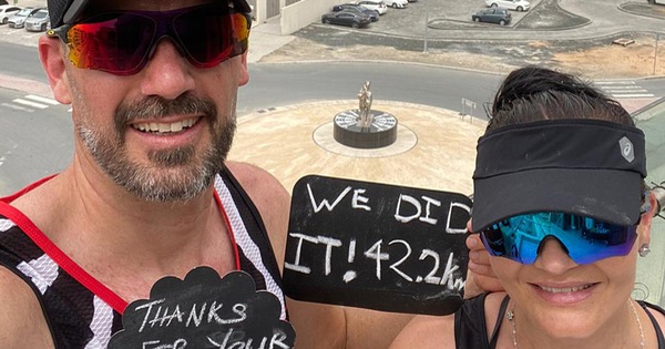 Cặp vợ chồng đã hoàn thành cuộc đua marathon trên…bancông trong thời gian 5 tiếng dưới sự cổ vũ, tiếp sức của con gái 10 tuổi. Thông điệp họ muốn lan tỏa là phải khỏe mới thoát được virus corona.