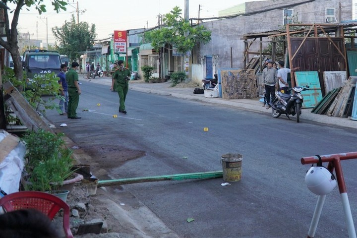Cảnh sát Bình Thuận khám nghiệm hiện trường vụ án trên đường Võ Văn Tần. Ảnh: Việt Quốc