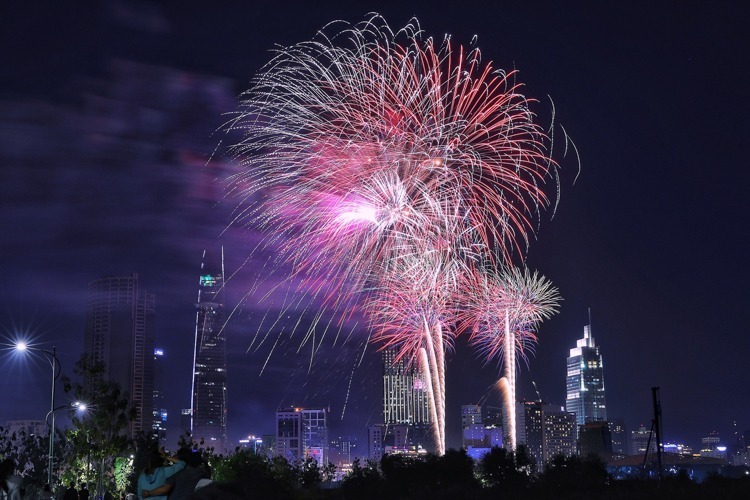 Hàng nghìn người đổ về các khu vực trung tâm ở Hà Nội, TP HCM, Huế… đón thời khắc chuyển giao năm cũ sang năm mới với màn pháo hoa rực sáng.
