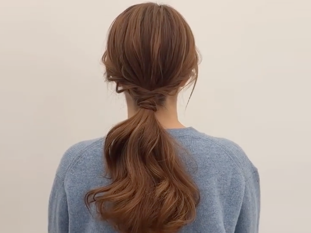 Dùng hai lọn tóc nhỏ, quấn xung quanh thay cho chun buộc giúp kiểu tóc đuôi ngựa thấp duyên dáng hơn và phù hợp cho hầu hết các dịp.