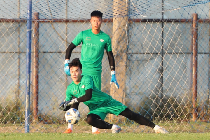 Chưa có áo theo tiêu chuẩn của AFC, các thủ thành Nguyễn Văn Toản, Bùi Tiến Dũng… phải mặc áo cũ lộn ngược từ trong ra ngoài ở buổi tập chiều 7/1.