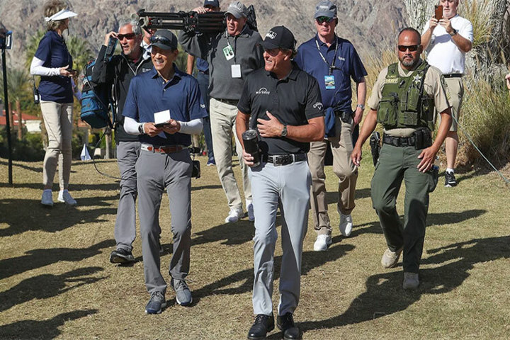 Trên chiến địa La Quinta Country Club tuần này, nhóm đấu của Mickelson có ít nhất tám người, gồm bản thân golfer này và caddie riêng, ba bạn chơi và ba caddie của họ, người ghi điểm của ban tổ chức và nhân viên an ninh. Trong đó, Ramirez dễ nhận biết hơn cả nhờ bộ cảnh phục, áo vest chống đạn chuyên dụng với súng bên hông. Thông thường, các golfer chuyên nghiệp không có vệ sĩ đi cùng trong vòng đấu, chỉ có những ngôi sao đặc biệt mới được đặc quyền này. Qua hai vòng đầu của American Express 2020, chỉ có Mickelson và Rickie Fowler được bố trí vệ sĩ đi cùng.