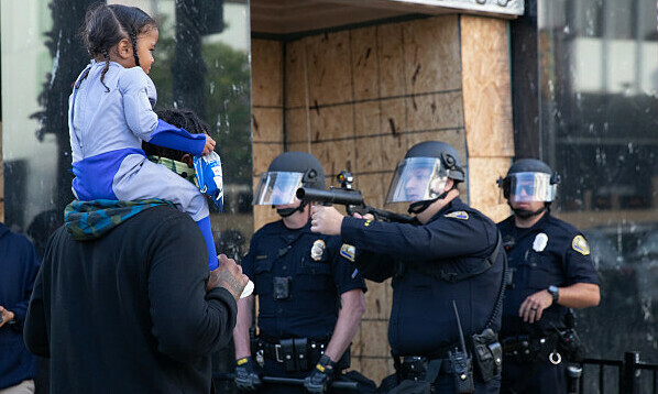 “Sĩ quan trong bức ảnh, anh ta không xứng đáng là một cảnh sát”, Dontae Parks, 29 tuổi, nói về người cảnh sát đứng cách anh và con trai chưa đầy một mét, chĩa vũ khí vào họ trong cuộc biểu tình ở Long Beach, California, hôm 31/5. “Nhìn vào anh ta, tôi có thể nói rằng anh ta sẵn sàng bắn bất cứ lúc nào”.