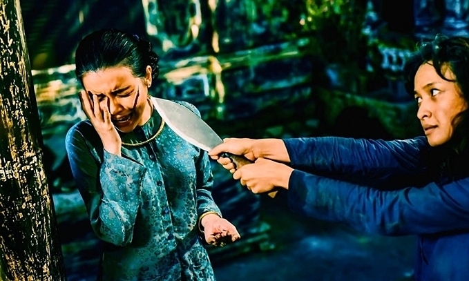 Cảnh phim diễn ra trong tập 49 lên sóng tối 28/10. Khi đó, mợ hai Sáng (Cao Thái Hà) đang ăn cơm, Hiểm (Lê Bê La) vác dao tới chém bà ta để trả thù. Hai Sáng sợ hãi chạy quanh nhà nhưng không tránh được một vết rạch lớn trên má trái. Trái ngược với không khí căng thẳng trong phim, Cao Thái Hà và Lê Bê La đều tỏ vẻ phấn khích khi xem lại hình ảnh trên máy quay.