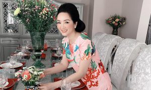 TP HCMHoa hậu Giáng My tự tay trang hoàng nhà cửa, làm tiệc mừng tuổi
