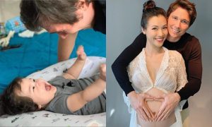 Jack Cole – ông xã của Hoàng Oanh – vui đùa bên con trai Max