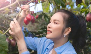 Lý Nhã Kỳ thu hoạch cà chua