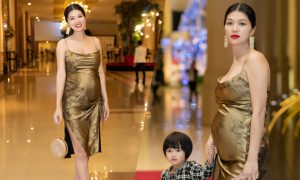 TP HCMHoa hậu Oanh Yến khoe vòng hai tròn vo khi cùng con gái Gia