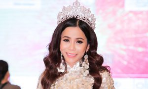 Oanh Lê diện áo dài, đội vương miện dự sự kiện