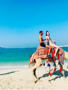 Ngọc Trinh diện bikini siêu nhỏ cưỡi lạc đà đi dạo biển Dubai