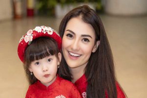 Hồng Quế và bé Cherry mặc áo dài đỏ của Ngọc Hân, catwalk trong chương