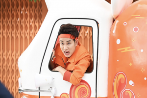 Trong teaser MV mới, Trúc Nhân lái xe hình chuột phối tông cam trắng và