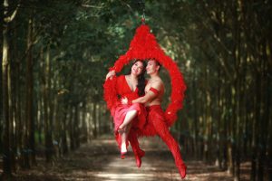 MC Hồng Phượng – vợ Quốc Cơ – thực hiện những động tác xiếc trên