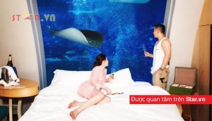 Vũ Khắc Tiệp đang rất hạnh phúc với Ngọc Trinh trong căn phòng Ocean suite cho những khách Supper Vip tham dự Đêm Hội Chân Dài 12?
