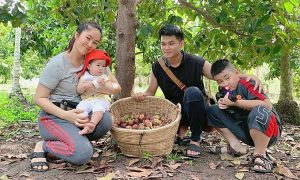 Vợ chồng Lê Phương đưa hai con Cà Pháo, Bông đến vườn trái cây của