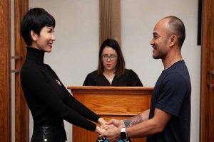 Người mẫu Xuân Lan và ông xã Nguyễn Ngọc Lâm làm thủ tục đăng ký