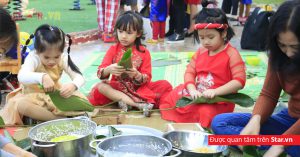 Mầm non Trung Kiên: Gói bánh chưng, cùng bé cưng, Tết thật là ưng