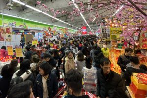 Xếp hàng chờ thanh toán trong siêu thị ngày giáp Tết