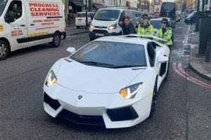 Hai nữ cảnh sát giúp tài xế đưa chiếc Aventador màu trắng vào chỗ an