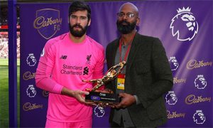 Alisson nhận Găng Tay Vàng của Ngoại hạng Anh mùa này