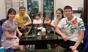 Trung vệ Quế Ngọc Hải và vợ con có buổi hẹn hò đi ăn cùng