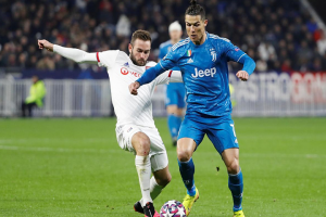Cú sút phạt trúng hàng rào trong trận gặp Lyon hôm 26/2 khiến Cristiano Ronaldo