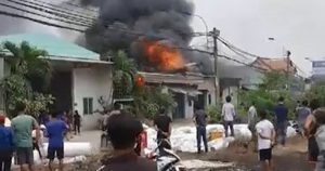 Nhà xưởng chứa nguyên vật liệu sơn móng tay bốc cháy ngùn ngụt giữa trưa
