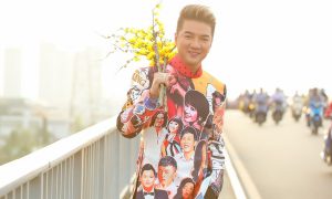 Ca sĩ Đàm Vĩnh Hưng mặc áo dài in hình nhiều nghệ sĩ: Hoài Linh,