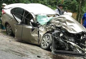 Ôtô 4 chỗ bẹp dúm đầu khi đâm xe khách trên quốc lộ